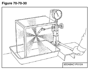 Slowly move the tester handle to measure the pressure at which fuel begins jetting out from the nozzle.