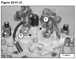 At the front side of the control valve locate the auxiliary section load check valve (Item 2) [Figure 20-41-31].