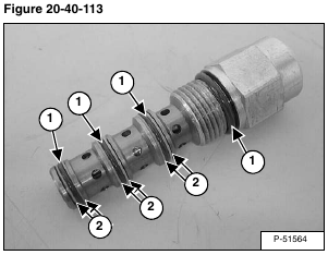 Remove the O-rings (Item 1) and back-up rings (Item 2) [Figure 20-40-113] from the tilt lock valve, and replace with new.