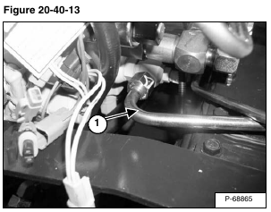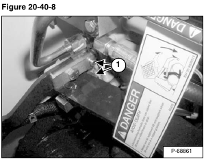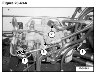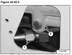 Disconnect and cap the hose (Item 2) [Figure 20-40-7] from the lift arm bypass valve to the drive motor case drain.