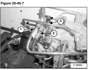 Disconnect and remove the tubelines (Item 1) [Figure 20-40-7] from the lift arm bypass valve to the control valve.