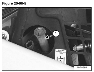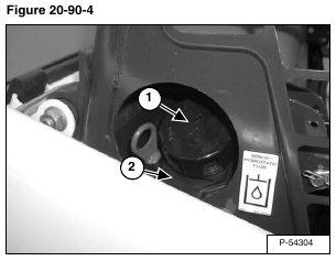 Remove the fill cap (Item 1) from the hydraulic reservoir (Item 2) [Figure 20-90-4].