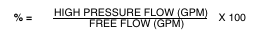 Start the engine and run at low idle RPM. Make sure the tester is connected correctly. If no flow is indicated on the tester, the hoses are connected wrong. With the hoses connected correctly, increase the engine speed to full RPM*.
