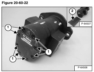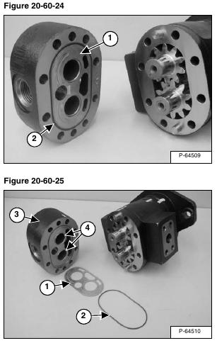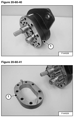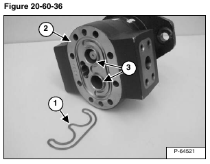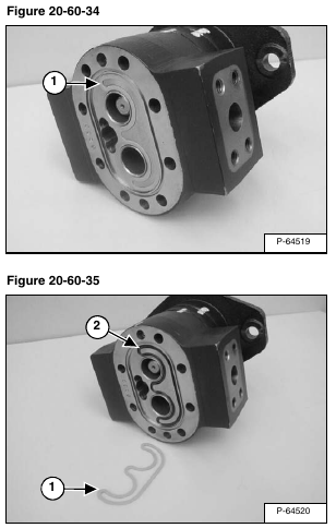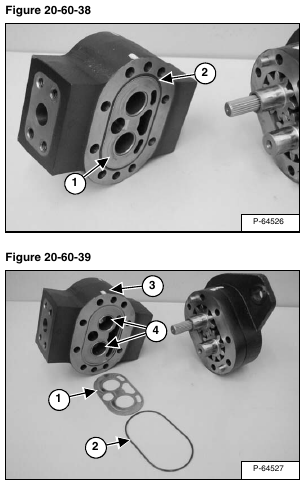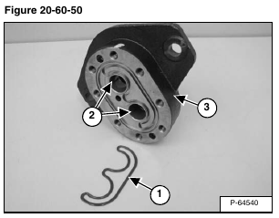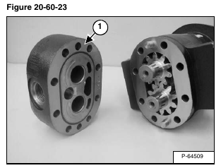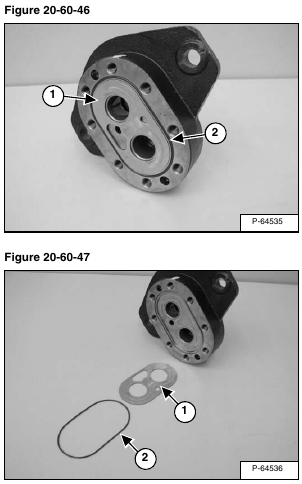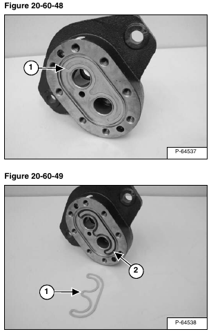 Remove the wear plate (Item 1) and O-ring (Item 2) [Figure 20-60-38] & [Figure 20-60-39] from the pump center section. Inspect for damage and replace as needed.