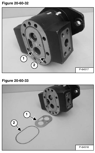 Remove the wear plate (Item 1) and O-ring (Item 2) [Figure 20-60-32] & [Figure 20-60-33] from the pump center section. Inspect for damage and replace as needed.
