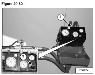 Install a hydraulic tester (Item 1) [Figure 20-60-1] onto the front auxiliary quick couplers.