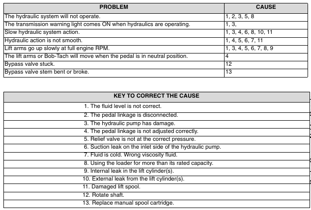 BOBCAT S130 – HYDRAULIC SYSTEM INFORMATION – Troubleshooting
