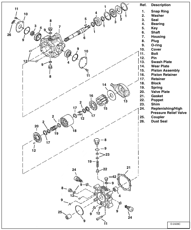 BOBCAT S130 – HYDROSTATIC PUMP – Parts Identification (Left Half)