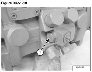 The charge relief valve (Item 1) [Figure 30-51-18] is located on the back of the hydrostatic pump.
