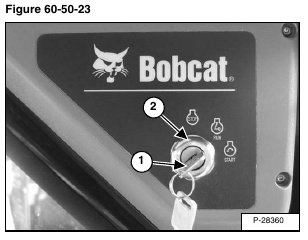 Disconnect the key switch wiring harness (Item 1) [Figure 60-50-22] from the back of the control panel.