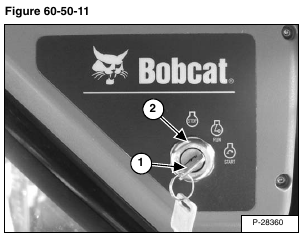 Disconnect the key switch wiring harness (Item 1) [Figure 60-50-10] from the back of the control panel.