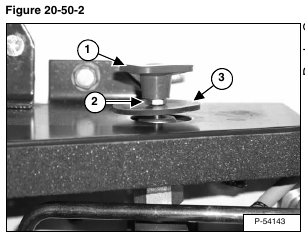 Remove the Lift Arm ByPass Control knob (Item 1) and the jam nut (Item 2) from the Lift Arm ByPass valve shaft [Figure 20-50-2].