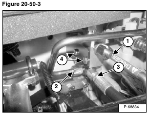Disconnect the drain tubeline (Item 2) [Figure 20-50-3] from the Lift Arm Bypass valve.