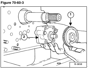 Remove the oil pump mounting bolts. Remove the oil pump (Item 2) [Figure 70-60-3].