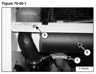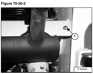 Remove the right side mounting bolt (Item 1) [Figure 70-30-2] from the muffler.