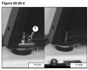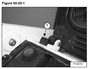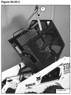 Remove the operator cab stop (Item 1) (both sides) [Figure 50-20-1].