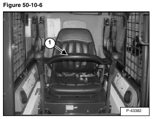 Remove the seat bar (Item 1) [Figure 50-10-6] from the operator cab.