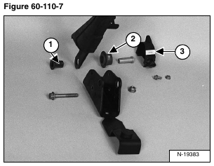 Installation: Be sure the tabs on the pivot bushing are positioned in the slotted hole (Item 1) [Figure 60-110-7] of the seat bar.