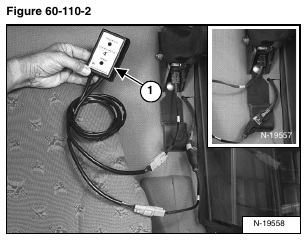 Connect the Sensor Tester (Item 1) [Figure 60-110-2] inline, to the seat bar sensor connectors. See inset [Figure 60-110-2].