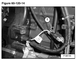 Check the wire connections at the engine flywheel RPM speed sensor (Item 1) [Figure 60-120-14].