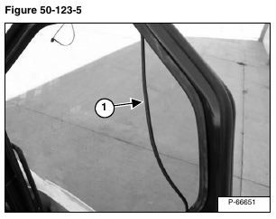 Apply liquid soap on the rubber cord to make installation easier. Install the rubber cord (Item 1) [Figure 50-123-5] into the molding on the inside of the operator cab.