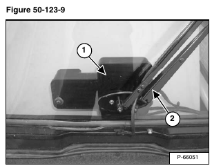 Install the wiper motor (Item 1) and wiper arm assembly (Item 2) [Figure 50-123-9].