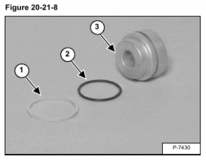 Remove the seal (Item 1) and O-ring (Item 2) from the piston (Item 3) [Figure 20-21-8].