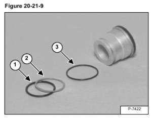Remove the thick O-ring (Item 1) and the back-up washer (Item 2) from the groove in the head. Remove the thin O-ring (Item 3) [Figure 20-21-9].