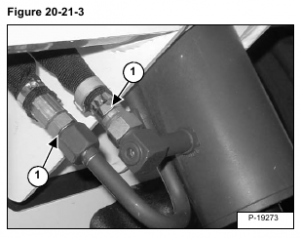 Remove the hoses (Item 1) [Figure 20-21-3] from the tilt cylinder fittings.