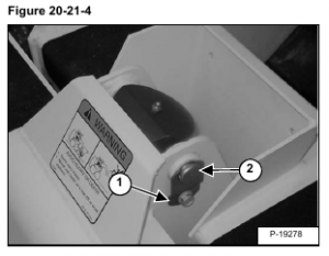 Remove the bolt (Item 1) and the retainer (Item 2) [Figure 20-21-4] from the base end of the tilt cylinder.