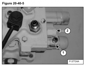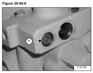The lift arm by-pass orifice is located in the port with the 90ยฐ fitting (Item 1) [Figure 20-40-5].