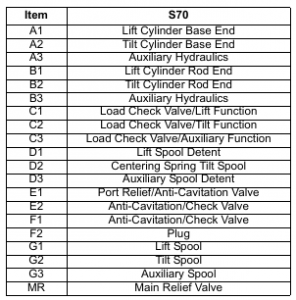 BobCat S70 – HYDRAULIC CONTROL VALVE – Identification Chart