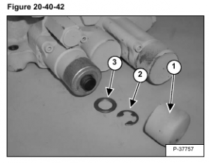 Remove the end cap (Item 1). Use a screw driver to remove the snap ring (Item 2). Remove the washer (Item 3) [Figure 20-40-42].