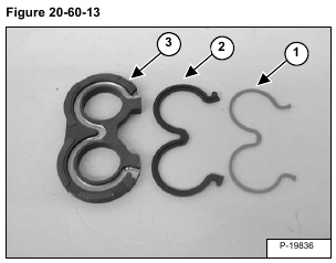 Remove the back-up ring (Item 1) and seal (Item 2) from the pressure plate (Item 3) [Figure 20-60-13].
