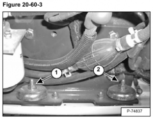 Remove the nut, bolt, spacer, mounts and snubber cups (Item 1) [Figure 20-60-6] from the right side hydrostatic pump mount.