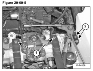 Remove the bolts (Item 1) [Figure 20-60-5] from the steering lever linkage. Remove the linkage from the hydrostatic pumps.