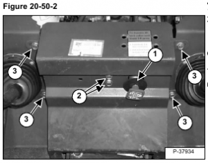 Remove the control shield mounting bolts (Item 3) [Figure 20-50-2].