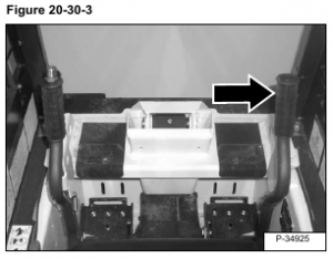 Start the engine and run at low idle RPM. Push the right steering lever all the way to the right to engage the front auxiliary hydraulics detent [Figure 20-30-3].